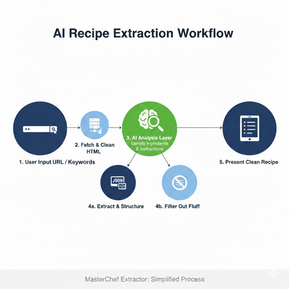 - AI Analysis Layer (The Brain): The cleaned DOM structure is fed into an NLP model designed to identify semantic blocks. It looks for patterns indicating lists of quantities (ingredients) and sequential imperative sentences (instructions), ignoring the “fluff” text surrounding them.